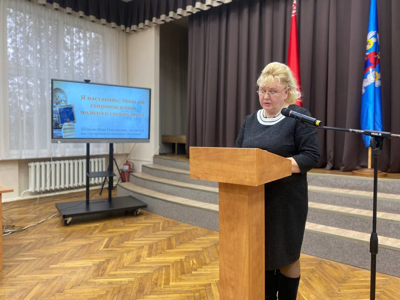 Наставник, мастер производственного обучения Шаврова В.Г. поделилась опытом по сопровождению молодого специалиста. Молодой педагог Карпенко В. Г., преподаватель, рассказала о периоде адаптации в коллективе и своих профессиональных планах.