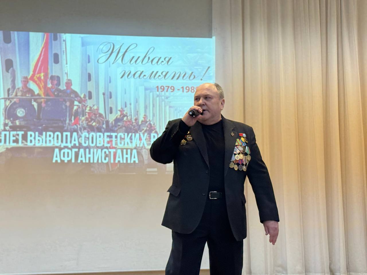 Особым подарком для подрастающей молодежи стало выступление воина-интернационалиста полковника Кучинского Александра Сергеевича, который исполнил трогательные песни о доблести, чести и мужестве.