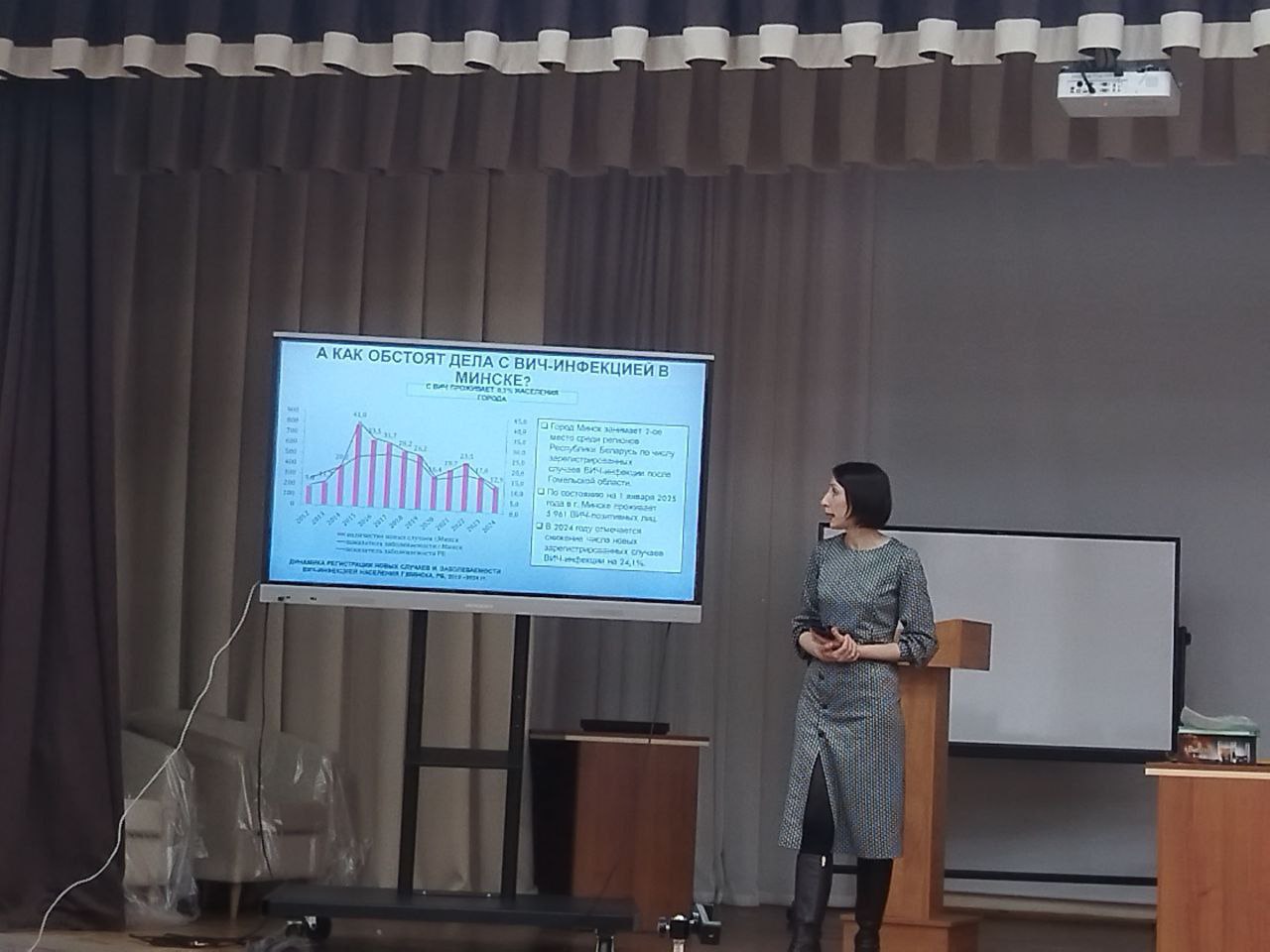 05.03.2025На этой неделе учащиеся инновационного строительного колледжа им.Жижеля имели уникальную возможность пообщаться с сотрудником Центра гигиены и эпидемиологии Октябрьского района г. Минска Митряйкина Юлия васильевна тему ВИЧ-инфекции.