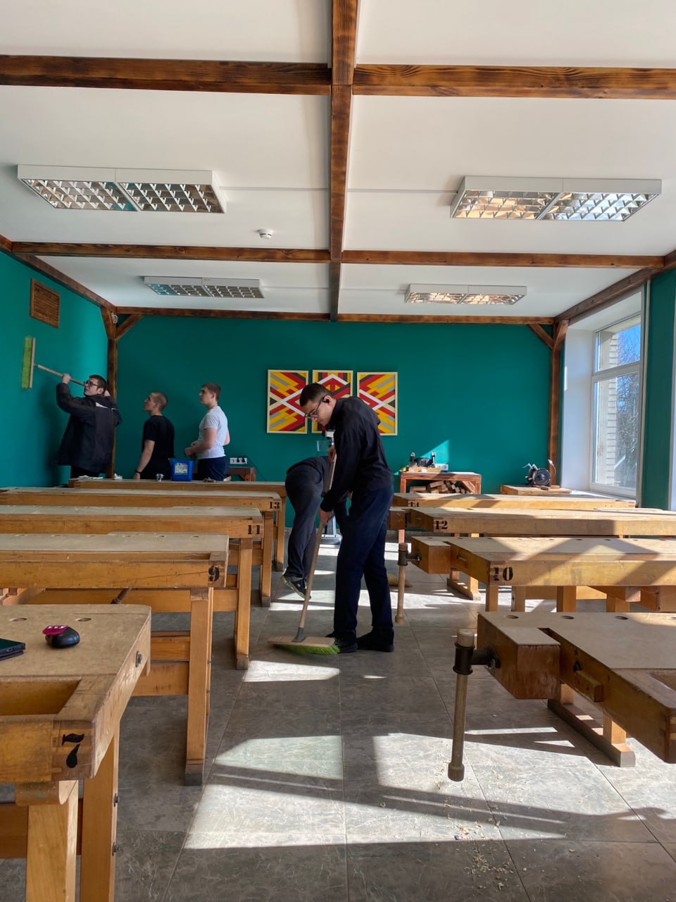 Преподаватели, мастера, учащиеся и воспитатели объединились для общего дела: наводили порядок в учебных кабинетах, убирались в общежитиях, привели в порядок дворовую территорию колледжа.