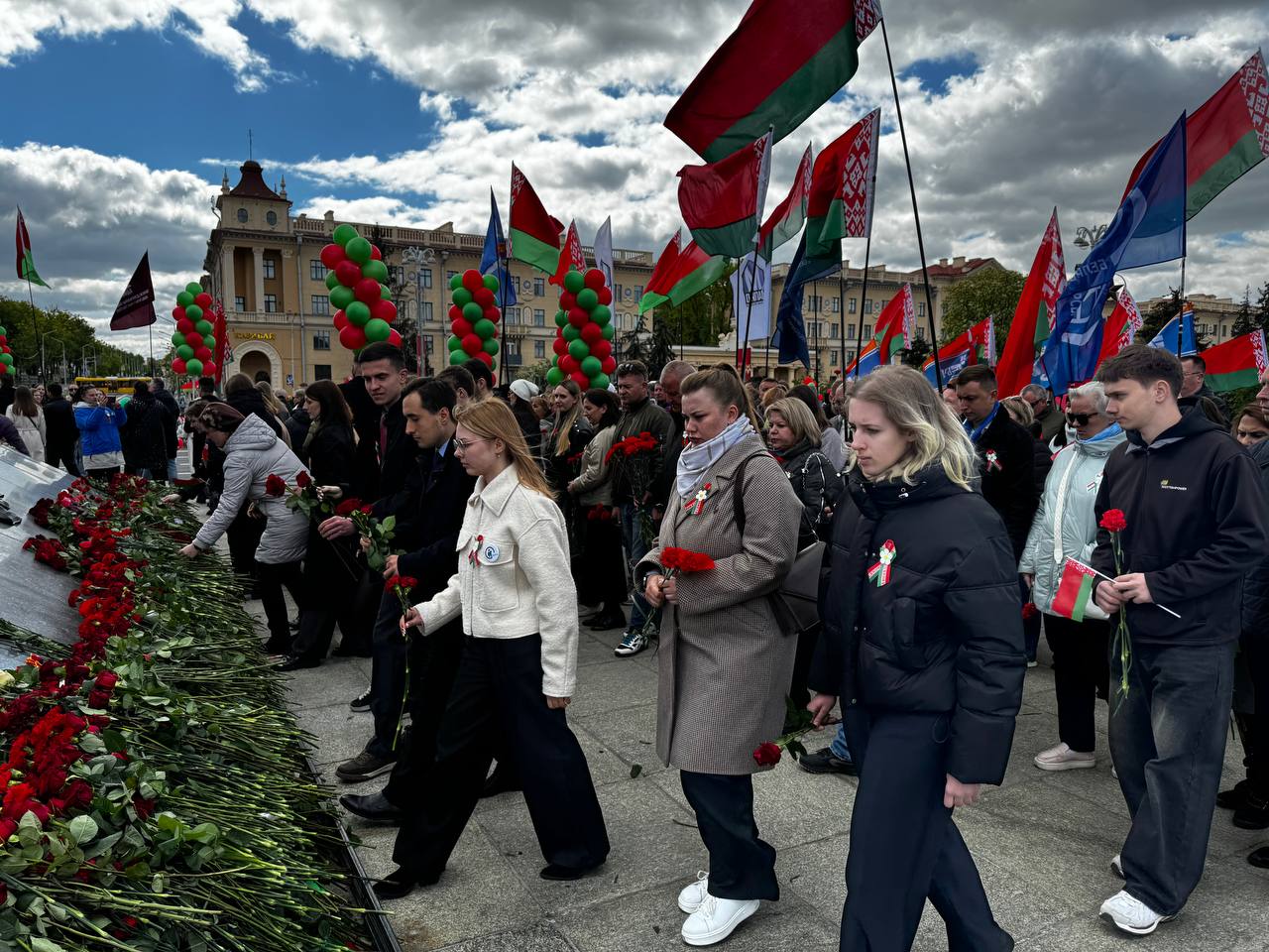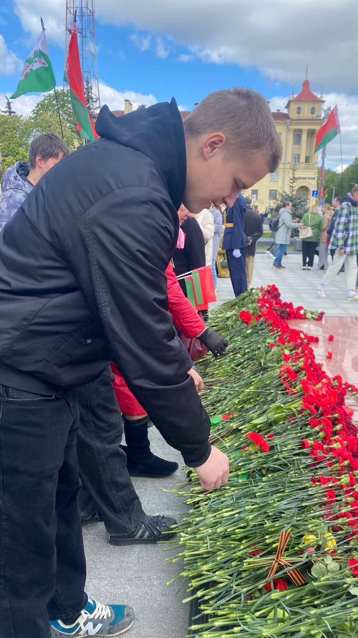 09.05.2025Педагоги и учащиеся учреждения образования "Минский государственный колледж инновационных строительных технологий им. И.М.Жижеля" торжественно возложили цветы к монументу Победы, символизирующему героизм Советской армии, партизан и подпольщиков, отдавших жизни за нашу свободу.